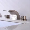 Cheap Price Freeshipping From US 3 Holes Bathroom Faucet Deck Mount Dual Handles Brushed Brass Vanity Mixer Tap with Free Shipping Worldwide!